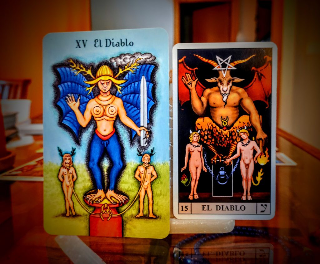 En resumen, El Diablo en el Tarot es una carta que nos recuerda que hay aspectos ocultos en nosotros que no reconocemos, que pueden limitar nuestra libertad y nuestra capacidad para alcanzar la realización personal. No solo nos invita a confrontar nuestras propias sombras y a liberarnos de las influencias negativas que nos mantienen atrapados en la oscuridad, sino también a conectarnos con nuestras pasiones, proyectos y nuestro disfrute en la vida. Es una carta poderosa que nos recuerda que enfrentando nuestras propias sombras y conectándonos con el disfrute, podemos encontrar la verdadera libertad y el camino hacia la realización.
